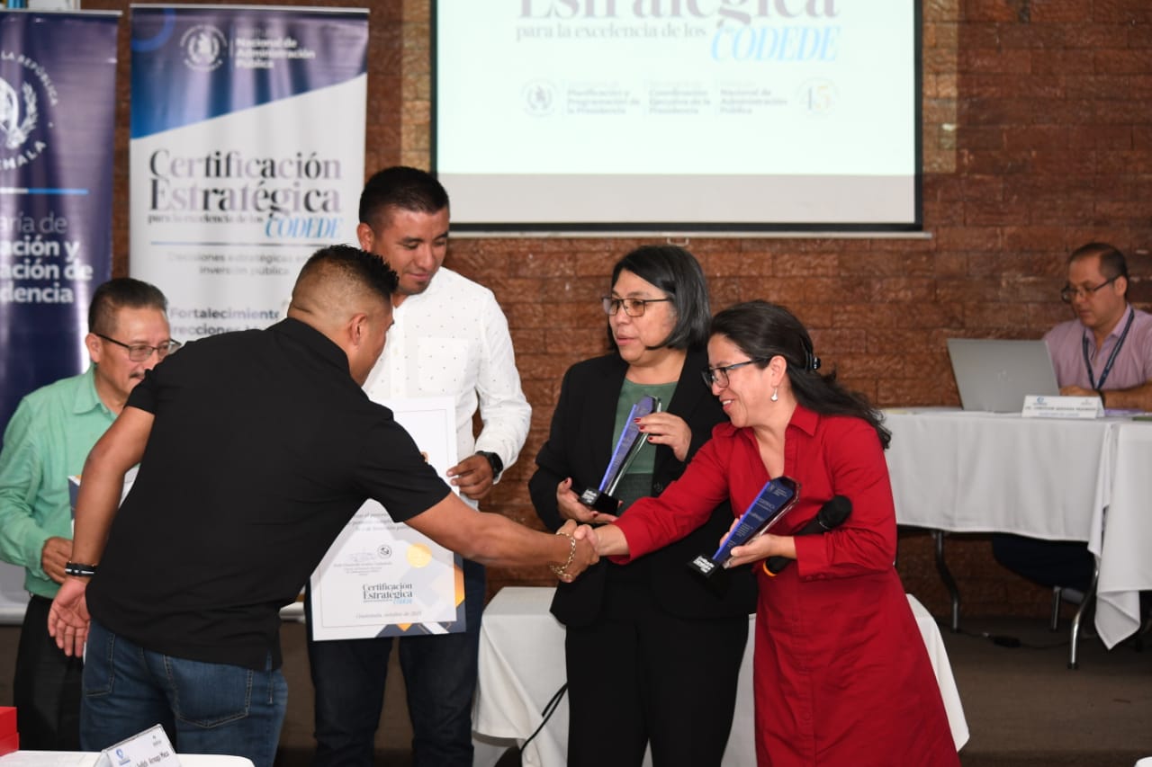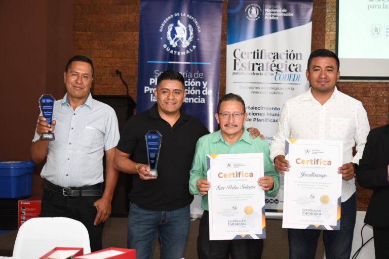 El Instituto Nacional de Administración Pública (INAP) en coordinación con la secretaria de coordinación ejecutiva de la presidencia (SCEP) certificó a las municipalidades de Jacaltenango y San Pedro Soloma en Huehuetenango, por el cumplimiento de la norma N-1 en proyectos de preinversion.