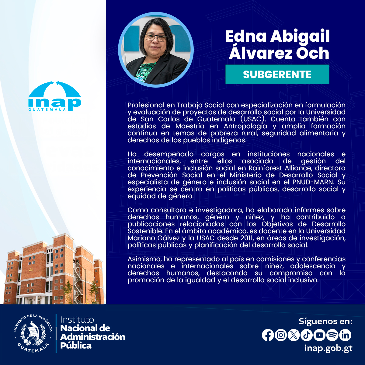 El INAP es el órgano técnico de la Administración Pública, responsable de generar y lograr que se ejecute un proceso permanente de desarrollo administrativo con el fin de incrementar la